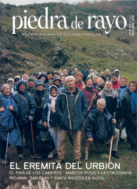 Ezberdinak Llanos, Armando. Peña Lacha. Un menhir en La Rioja Muntión, Carlos. La imparable destrucción del Patrimonio Moya Valgañón, José G.. Hasta luego, don Ciriaco Gil Argaiz, Pilar. Semana Santa en Ledesma Elías, Luis Vicente. Saturnino Jiménez, escriñero González, Marisol. Los ratones del castillo de Nieva Ezquibela, Iñigo J.. Bolos y boleros en Alcanadre Asensio, Javier. Enciso. Savia nueva para el viejo carnaval Recarte, Antonio. El alma de la toponimia Gómez, Rufino. La Piedra de la Pastora Gil Andrés, Carlos. Lejos del frente Palacios, Ramiro. Peroblasco. Cuando la naturaleza nos dejó solos SODePAZ Rioja. Tienda de la Solidaridad Martínez Alvarez, Juan Carlos; Fani, fotógrafo de pueblo Lander, José María. Malvasía
