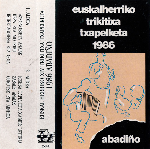 1. Aldea: 1- Pagadi anaiak: Trikitixa; Herrikoia Porrusalda; Herrikoia; Egañazpi Bero-beroa; P. Yanci Pagadi; P. Yanci 2- Miren eta Iturbide: Trikitixa; Herrikoia Porrusalda; Herrikoia Sega-zorrozten; P. Yanci Arrate Irratia; P. Yanci 3- Jauregi Anaiak: Trikitixa; Herrikoia Porrusalda; Herrikoia 2. Aldea: 1- Jauregi Anaiak: Fandango; Herrikoia Arin-arin kurrixpil; P. Yanci 2- Martin eta Imanol: Mendirik mendi; Martin Porrusalda bertso berriak; Martin Mandio batean; Martin Arin dantzatu; Zelaia 3- Imuntzo eta Eperralde: Trikitixa; Herrikoia Porrusalda; Herrikoia Harri-mendi; Imuntzo Pagoeta; Eperralde