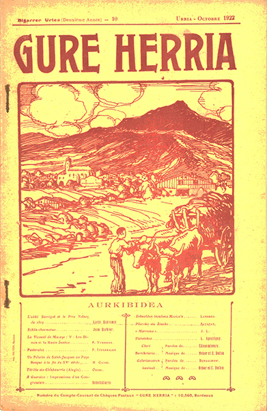 Foix, P. Sainte-Engrâce: Le quartier de la Caserne et le Bourg Oxobi. Harpeko Saindua: 1.- Ur Sendogarria Jean Elissalde. Oraiko pilotariak: Embil P. Yturbide. La Vicomté de Macaye (Suite) Lurtchuri. Supazter chokoan: Micheria Mayi Elissague. L'Héritage de l'Américain Zerbitzari. Haurren Chokoa: Alegia Emmanuel Souberbielle. La Leçon d'astronomie Larreko. Eskualdun biozduna Mexiko'n (III) H. Gavel. Grammaire pratique de la Langue Basque (Suite) L. Apeztéguy. Ilabetekoa Elissamboure. Apecha eta Lorea Nehor et C. Dufau. Apecha eta Lorea J.B. Jantzariak Nehor et C. Dufau. Jantzariak