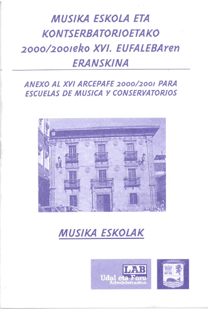 - Ezberdinak Arozena Muxika, Aitor. Agur t'erdi; Zabaleta Agirre, Gorka. Zuzendariaren agurra; Oñatiko Aita Madina Txistu Taldea. Elkartearen zilarrezko domina Gotzon Osinaga Uriarteri; MUSIKA; Iriondo, Lourdes. Lete, Xabier. Goikoetxea Maritxalar, Joxan (Moldaketa). Hala ere; Ramírez Intxausti, Pello. Itsasora mezu bat; Salvador Gil, Iñaki. Abril; Arregi Etxeberria, Marijose. Kimua; Furundarena Usabiaga, Aitor. Arrikutz; Zabala García, Xabier. Oskiarako bidea
